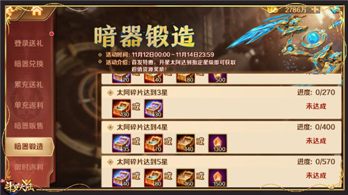 暗器锻造活动开启,升星可领珍贵资源
