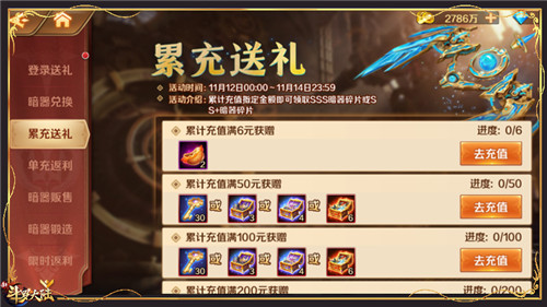 活动期间每日登录游戏即可免费领取太阿碎片、SS暗器碎片自选宝箱!