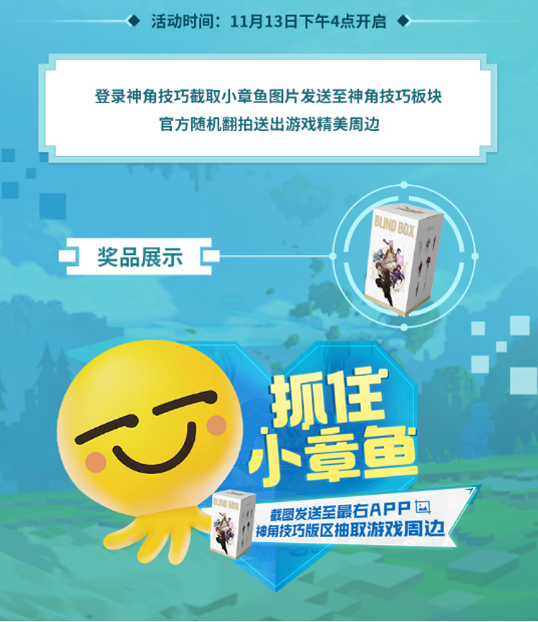 创造师们在玩游戏时还可以在录制自己的原创剧情,然后发布在最右APP《神角技巧》版区下的脑洞比拼版块,参与活动分现金大奖。还有机会获得苹果手表和周边盲盒福利哦!