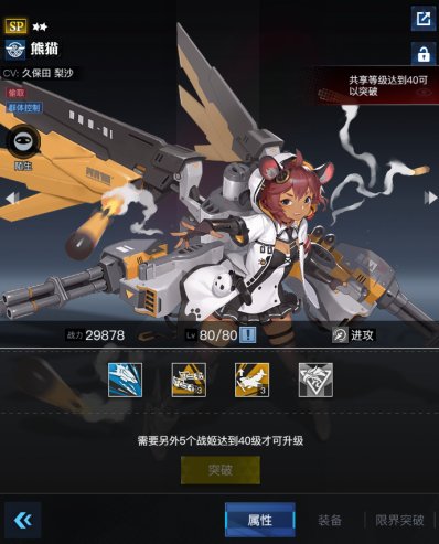 立绘一流,那么角色养成作为角色系统另一支撑点自然也要做的出色,如果你是一名养成类卡牌游戏爱好者,《零之战线》一定会让你满意。玩家培养一名战姬,需要经历升级、觉醒、突破,还有装备需求,简洁明了且玩法完善。