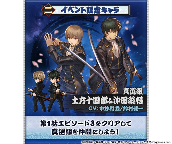 完成第1话第3节,角色「真选组土方十四郎&沖田总悟」将作为同伴加入!另外还可透过素材交换获得「角色上限解放套组」解放角色上限。