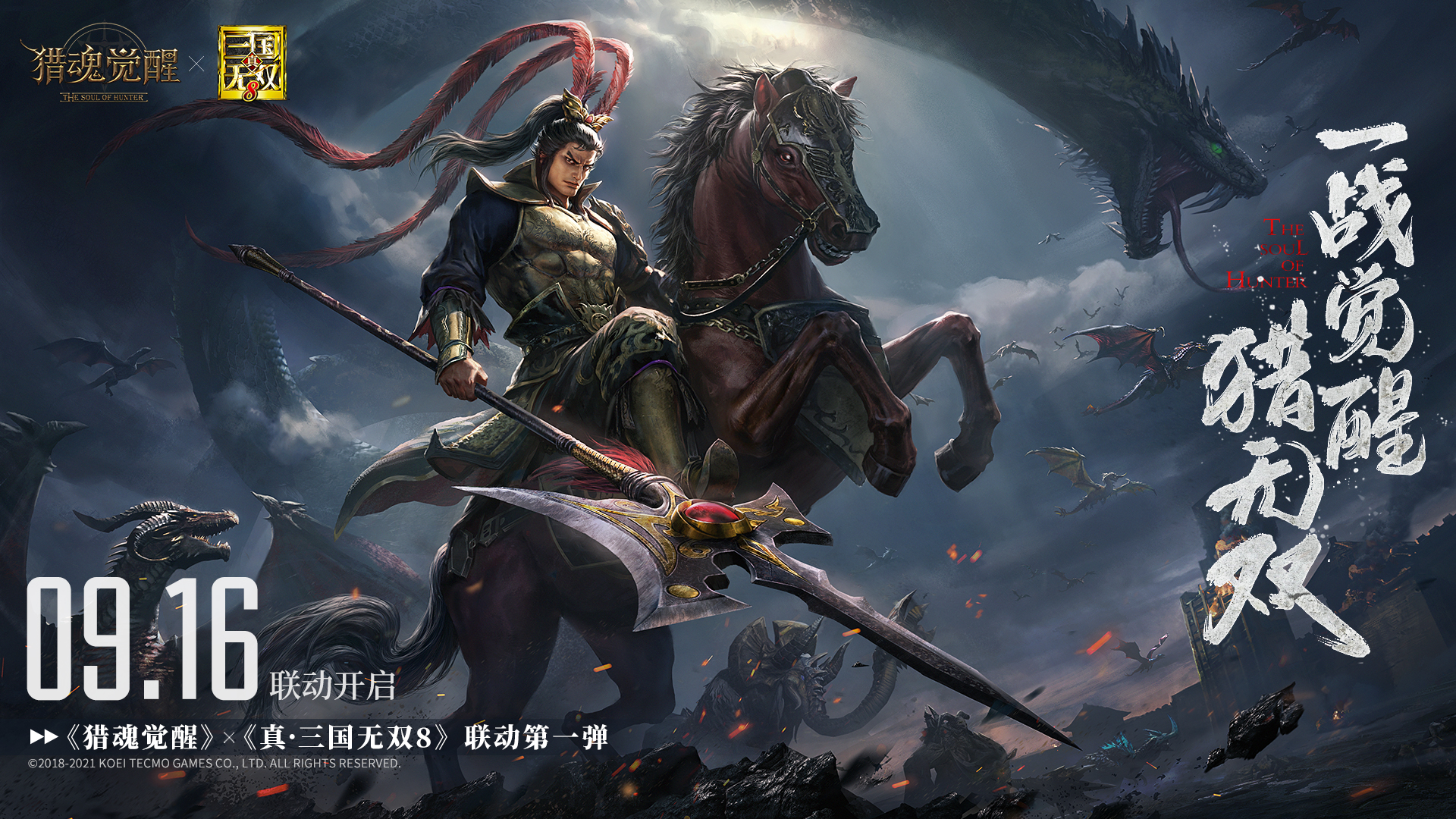 东汉末年分三国,乱世来临风云起,当三国群雄突降艾兰特大陆,历史中的英雄豪杰将与游骑兵们发生怎样神奇的碰撞?网易超真实团队狩猎手游《猎魂觉醒》与日本光荣特库摩出品的现象级动作游戏巅峰大作《真·三国无双8》重磅联动第一弹正式定档9月16日!风起云涌,山雨欲来!刀光剑影,谁主沉浮?强强联动即将为游骑兵们展现出联袂巨作!
