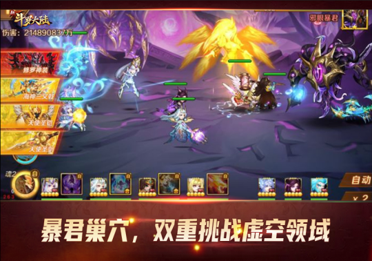 《新斗罗大陆》暴君巢穴BOSS战玩法最大的特点是分为两阶段战斗,第一阶段可以控制队伍一的四名魂师参与战斗,但队伍二的三名魂师可以正常输出,但不能手动控制。