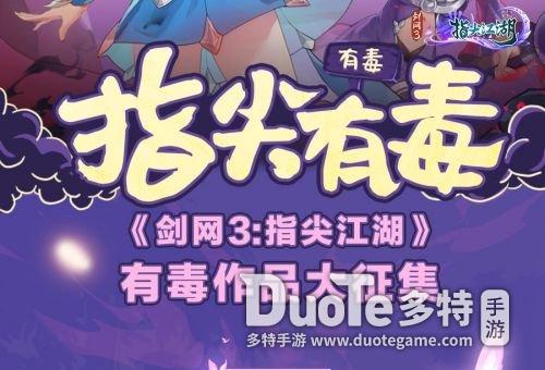全新门派五毒上线,【指尖江湖】主题作品征集大赛已开启!7月28日-8月16日,在微博、B站、抖音、推栏等平台投稿即有机会被官方翻牌,获得丰厚奖励!8月27日将在官方微博、B站及微信等渠道公布获奖名单,【实体购物卡】、【挂件·不思弦】及音乐专辑【踏歌江湖】典藏版等精美好礼等你来拿!