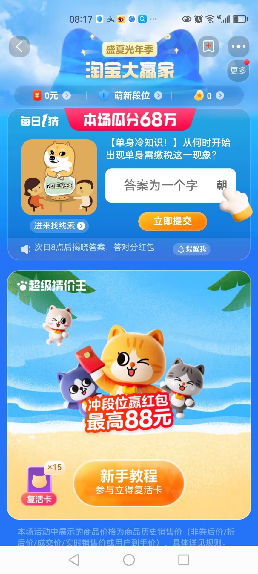 淘宝每日一猜8月12日的题目已经更新,很多用户不知道单身冷知识从何时开始出现单身需缴税这一现象,下面小编为大家带来淘宝每日一猜答案8.12,感兴趣的小伙伴一起了解一下吧。