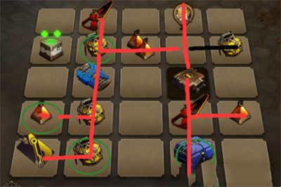 门卡再试用角色对角,玩家先去黑线拿炸弹(可以不拿),红色线打怪。