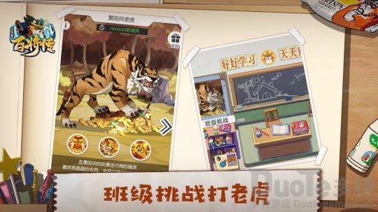 打败老虎和浑天兽,班级挑战成功,能获得丰厚的奖励。使用获得的班级弹珠,可以在【跳蚤市场】中购买装备。班级里还有通往【电脑城】的后门,趁大家不注意,偷偷和同学去玩组队挑战吧~那里也能收获班级弹珠哟~