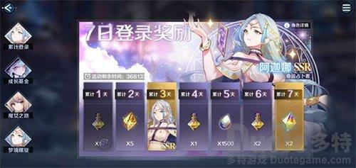 在公测期间连续登录七天,玩家每天登录均可获得超值奖品。第三日可获得SSR命运占卜者阿迦娜,第七日还可获得大块灵魂晶石(十连抽)*2。