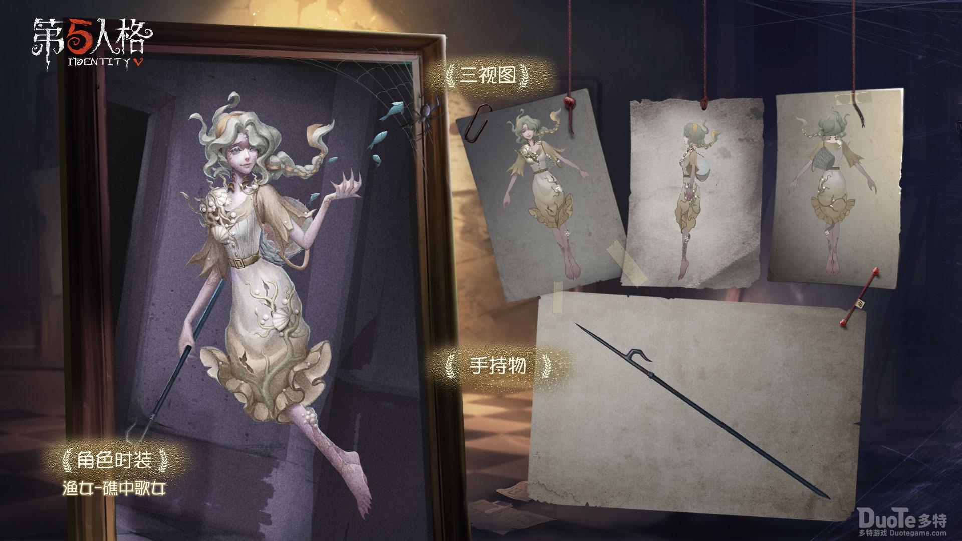 今日上线的渔女角色礼包内含监管者角色渔女及其独特时装“礁中歌女”,渔女-礁中歌女淡黄的主色调仿佛柔和的歌声一般,让人感到温暖与舒适,裙摆处的水草和右肩处珊瑚上点缀着贝壳和珍珠,似乎暗示着财富与珍宝,但当你接近歌女后,却会发现,自己不过是锐利鱼叉所期待的又一个猎物。