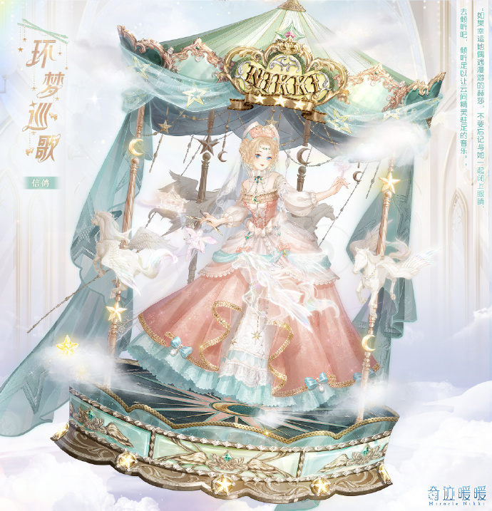 【环梦巡歌】含全新妆容“碧蓝心歌”,精美面饰“万物和弦”,精美可移动摆件“旋转八音盒”、“绵云浮梦”。