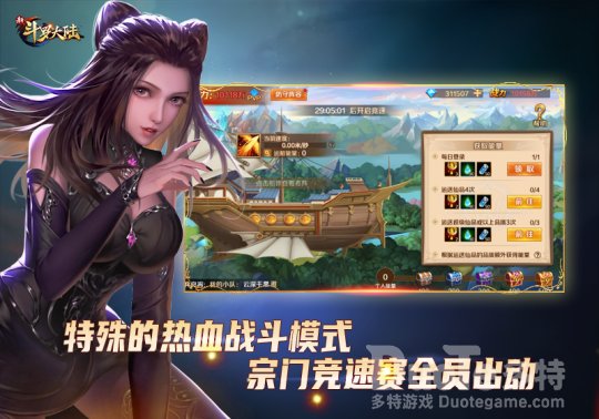 《斗罗大陆》的战斗乐趣是非常讲究团队配合的.上面讲的战斗玩法是《新斗罗大陆》中的个人战斗模式,而接下来介绍的宗门竞速赛则是团队战斗玩法。