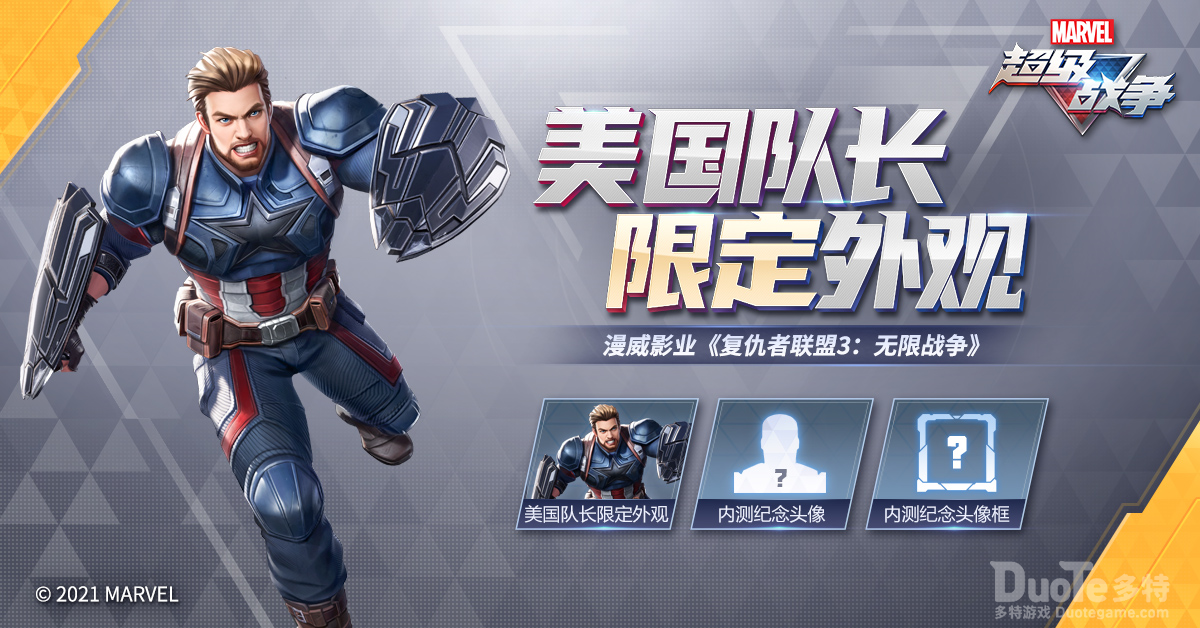 划重点,本次先锋测试为最后1次获取专属内测奖励的机会,且美国队长外观-漫威影业《复仇者联盟3:无限战争》为内测限定外观,各位玩家可千万别错过了。