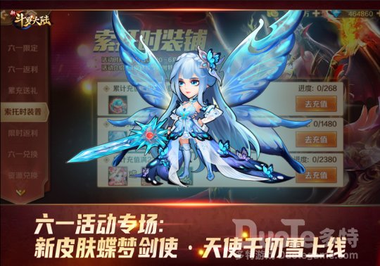 六一专场活动期间,索托时装铺再次“开业”迎客啦~全新皮肤“蝶梦剑使·天使千仞雪”在六一当日隆重上线,新皮肤首发限时特惠!快为你的女神穿上美美哒时装,一起快乐过六一吧~