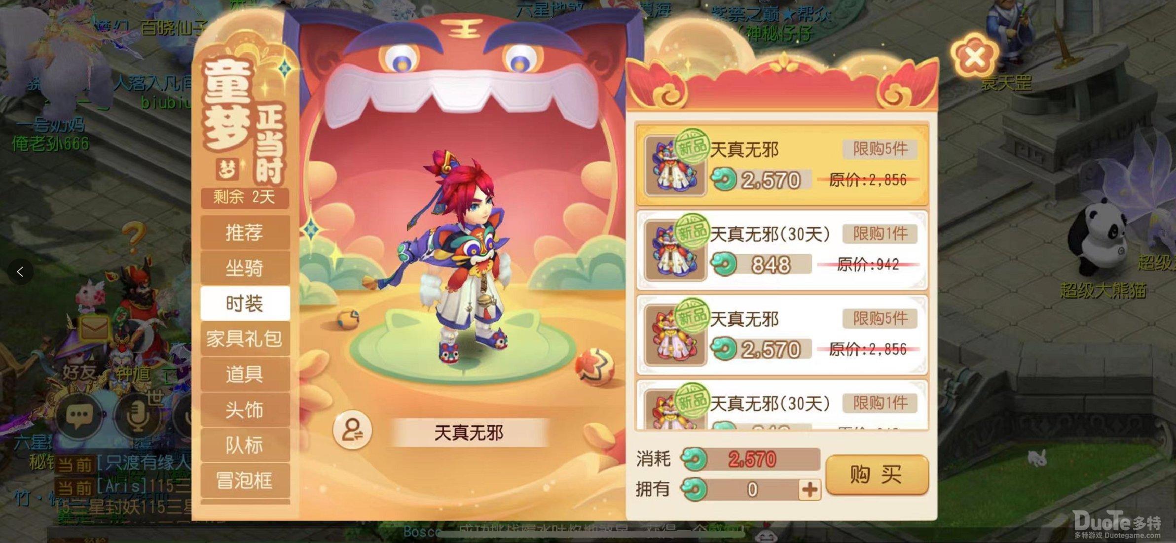 除了以上两大活动之外,在节日期间,《梦幻西游》手游还特别推出了童梦正当时儿童节特卖商城。通过这一商城,玩家不仅能买到童心满满的布偶虎坐骑,还能购入使用布偶虎元素打造的儿童节时装天真无邪(男)和童心未泯(女)。此外,更有全新头饰萌喵喵、虎喵喵和童梦奇缘头像框、童梦奇缘冒泡框以及拨浪鼓队标出售。喜爱打造个性化自我的朋友千万不要错过!