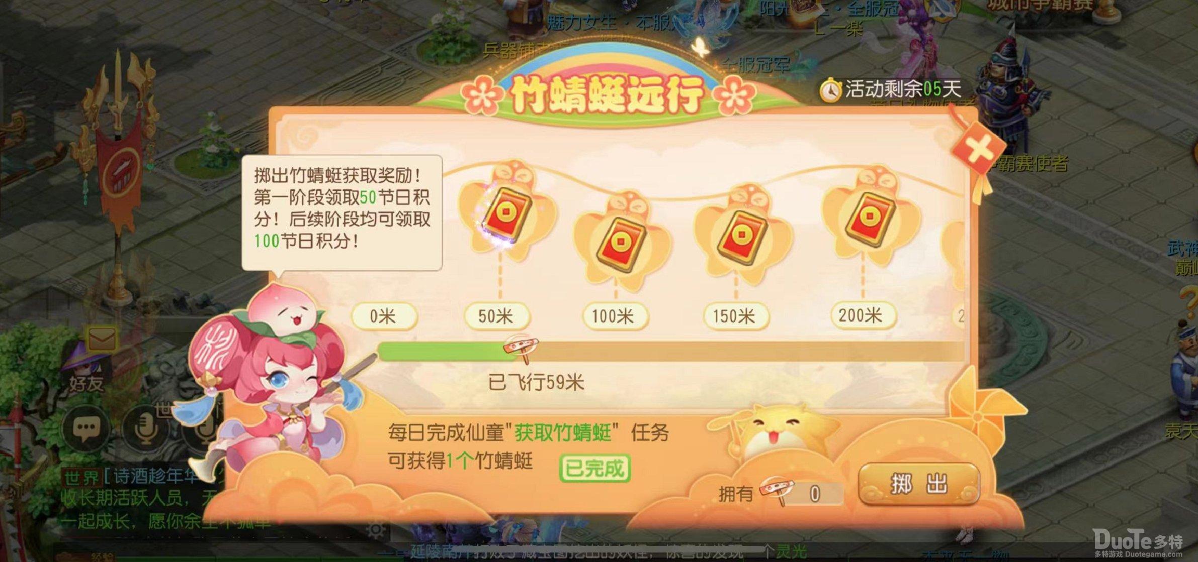 在无数人的童年里,竹蜻蜓都曾是他们重要的同年玩具。现在,灵心仙童邀请玩家一起放飞竹蜻蜓,重温童年纯真。在活动期间,等级≥40级的玩家可以在灵心仙童处领取任务以获取竹蜻蜓,然后玩家即可在活动界面放飞竹蜻蜓。随着这些竹蜻蜓累积的飞行距离增加,《梦幻西游》手游也将为玩家解锁包括经验、节日积分在内的丰厚奖励哦!