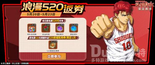 随着《灌篮高手》手游S6赛季进入爆燃冲刺阶段,在今日官方也开启了为期7天的520活动,满满福利只为让各位篮球手能在这美好的节日邂逅自己的热爱。