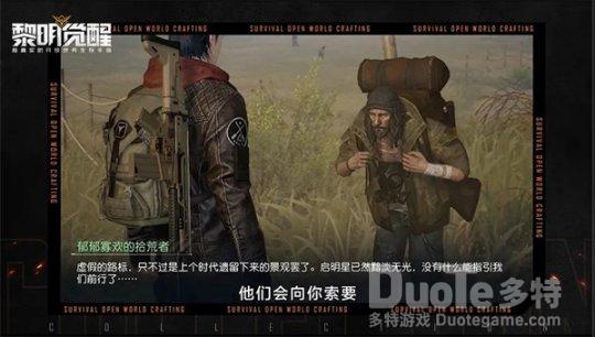 在《黎明觉醒》的大世界中,“拾荒者”中立势力由一群不愿因为生存资源稀缺而泯灭人性的幸存者组成。他们以乞讨、拾荒为生,组织成员间会共享情报、物资。这群社会最底层的人们,会因为微少的物资施予,感恩玩家并回馈以珍贵的情报信息,甚至会传授“乞讨”技巧,让玩家也能“在线乞讨”。