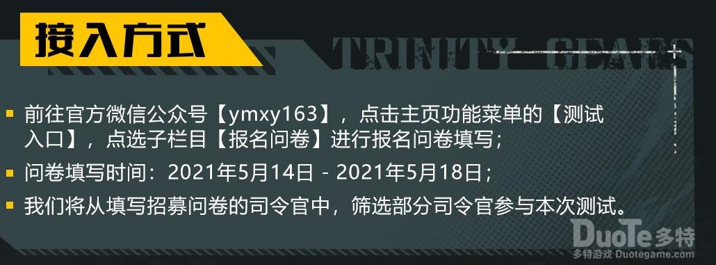 1-参与报名的玩家需在官方入口填写测试问卷。成功通过筛选的玩家,将会收到测试的相关通知与信息,请各位参与报名的玩家多多留意。