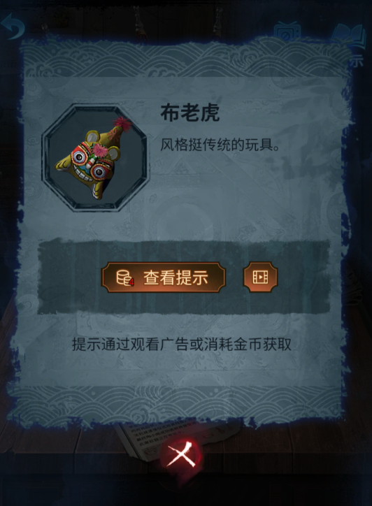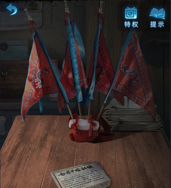 21、获得旗子和拨浪鼓,进入化妆间,将拨浪鼓放入神龛。进入仓库,点击桌子,将旗子插上去,获得布老虎,将布老虎放入神龛。