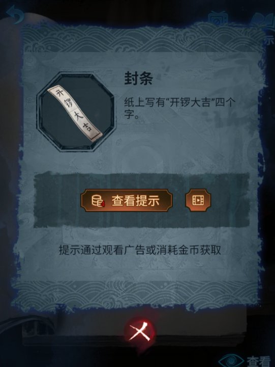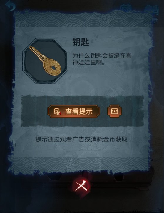 9、点击化妆桌,点击书,在书中获得封条,并得知想要喜神娃娃息怒,必须供奉玩具三件;二次开箱需要贴封条,并演奏特定曲目。