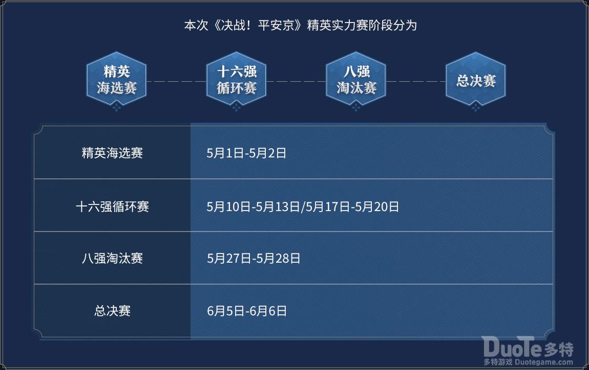 《决战!平安京》精英实力赛S2将于2021年5月10日正式开赛!本届赛事将继续为高端玩家队伍提供高水平竞技赛场,同时加入《决战!平安京》职业联赛青训营选手招募体系。赛事将通过报名海选角逐出16支高端玩家实力队伍参赛,通过12个比赛日的激烈角逐,决出精英实力赛冠军。表现出众的选手还将获得进入职业联赛青训营参加线下集训的名额、青训营定制头像框和额外个人赛事奖金奖励。