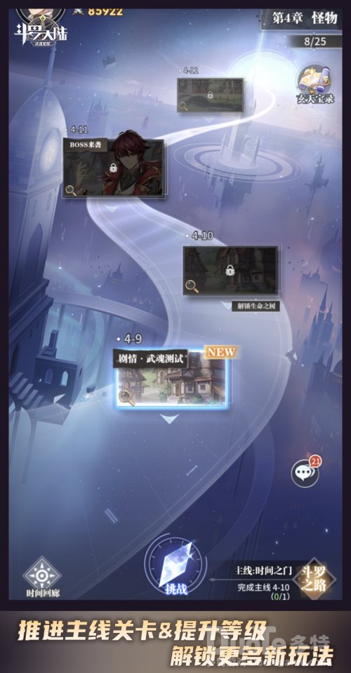 刚加入《斗罗大陆:武魂觉醒》的萌新们,首日尽可能快速推进主线关卡,提升主角技能,才能更快解锁更多玩法。主角等级的提升和主线推进是相互促进的。