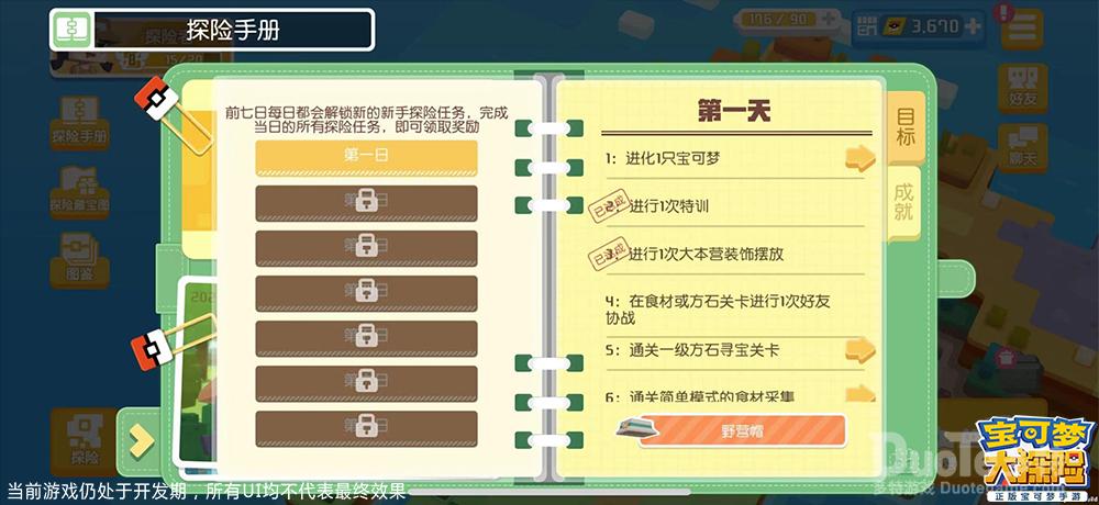 全新系统:贴心指引高效探险在《宝可梦大探险》中,上岛的探险家们将得到更贴心的全面引导,游戏新增“探险手册”帮助玩家迅速适应神秘的方可乐岛,轻松度过新手期。根据探险手册的指引,探险家可以清晰了解每日目标和自己所获得的成就,高效探险。
