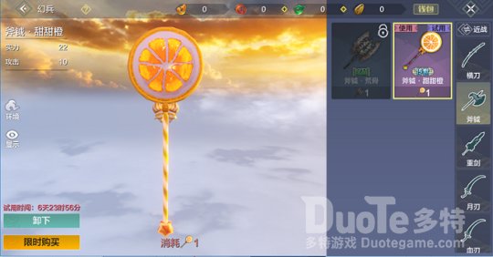 进入界面后,在界面右上角可以选择武器大类(有近战、异能及远程三种),然后挑选自己需要的武器种类即可,使用皮肤幻石可以永久解锁幻兵,使用试用幻石可以进行限时试用,武器穿戴幻兵后,可以享受武器属性的加成,具体加成请旅者们在游戏内解锁哟!