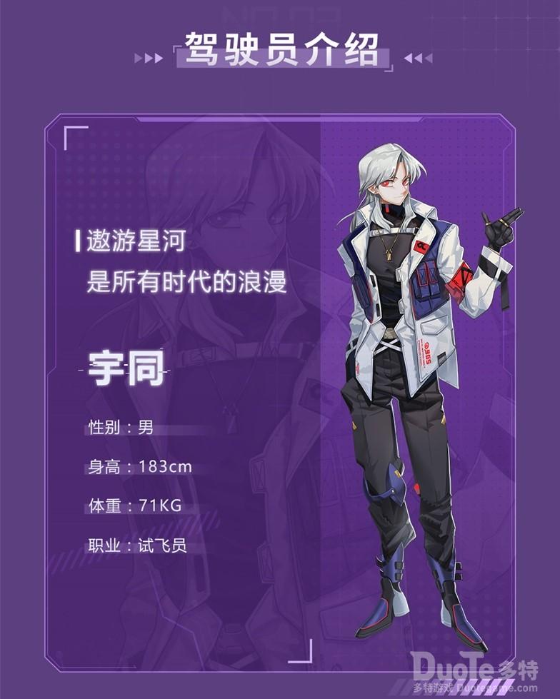 与此同时,在游戏官方此前的爆料中,新机甲“极光”的专属驾驶员也一并亮相。以“遨游星河是所有时代的浪漫”为介绍语,新驾驶员“宇同”身份为新颖的试飞员,其与新机甲之间的羁绊则更是令人好奇……