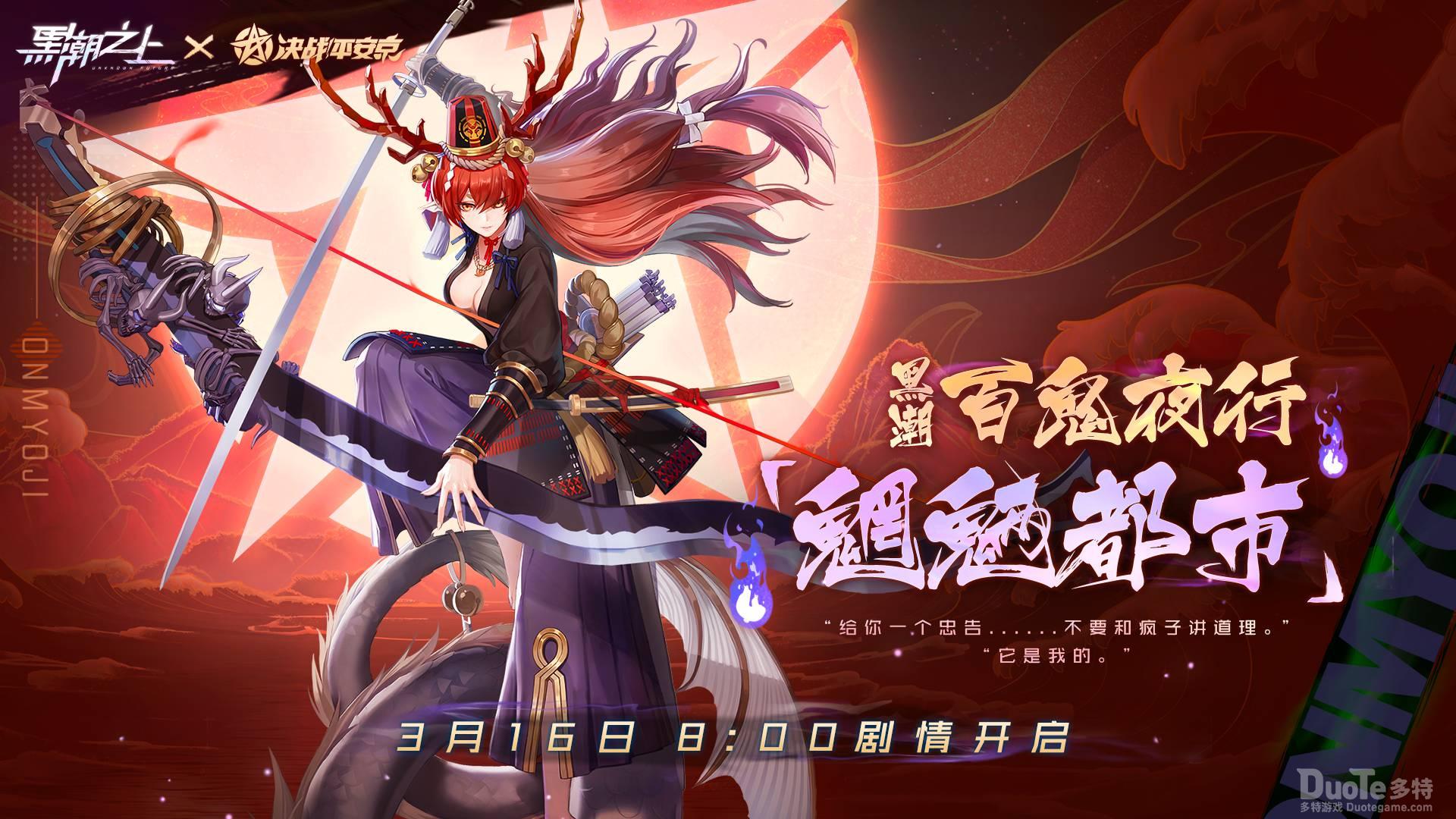 暗潮激涌,断波斩魄!《黑潮之上》X《决战!平安京》强势联动,平安京联动式神现已降临黑潮世界,3月16日起,探索全新「魍魉都市」,兑换丰厚任务奖励!神秘黑潮世界,精彩联动活动,等你上线开启!