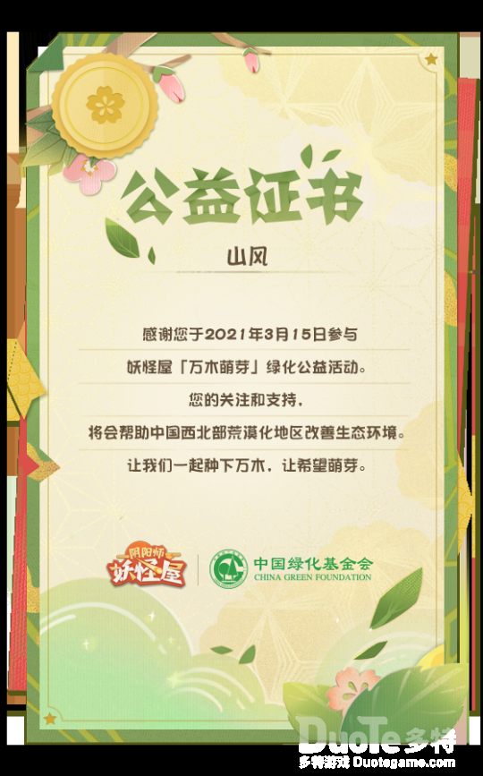 森林,生命的摇篮,也是地球之肺。而如今的森林因为自然原因和人类活动,被不断侵占,加剧了土地荒漠化趋势。《阴阳师:妖怪屋》在半周年之际携手中国绿化基金会开启的「万木萌芽」绿化公益活动,将于3月17日上线!