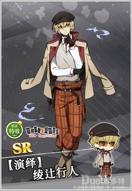 本次活动有机会获得以下限定角色: SR【演绎】绫辻行人、SR【温柔的破坏者】设计师