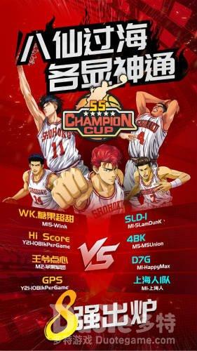 在八进四比赛中,SLD-1虽然凭借娴熟的配合先拔头筹,却仍不敌WK.糖果超甜丰富的经验和游戏熟练度遭遇逆转。Hi Score VS 4BK的比赛中。作为夺冠大热之一Hi Score一改往日战术改用双塔镇守内线,事实证明,临赛变阵机会与风险并存,被 4BK K以鸽王为圆心,施展自信且灵动的配合战术击败。在王爷点心与D7G的战斗中。王爷点心试图以仙道、阿神、长谷川的死亡组合压制对手。然而D7G凭借钢铁般的防守,最大程度利用篮板优势,轻松拿下战斗胜利。上海人1队在对阵GPS的战斗中。由于香草的多次判断失误,最终导致痛失好局,被迫投降,被GPS以3:0的大比分完胜比赛。