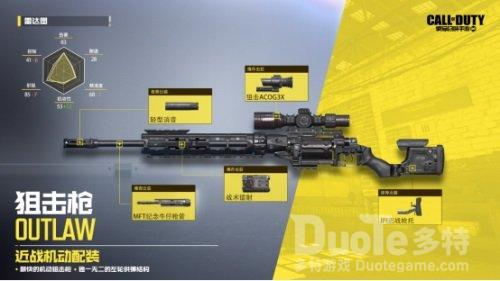 Outlaw的战术特点与功能性都非常出色。转轮供弹设计、造型前卫等,但只有高机动性和灵活性才是Outlaw最大的特色。对于狙击枪来说,高机动性将赋予战局更多的可能,除了远点部署、百里制胜,Outlaw还为冲锋狙打法提供了更优解法。