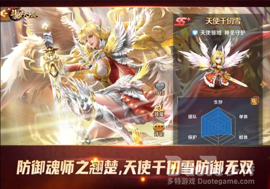 千仞雪神技“天使领域”效果可以赋予神圣守护,大幅度降低伤害、伤势,并且能在PVE战斗中永久提升伤害,一旦千仞雪濒临死亡,还能清除所有伤势并且恢复所有血量,这种复活效果在《新斗罗大陆》手游中可并不多。