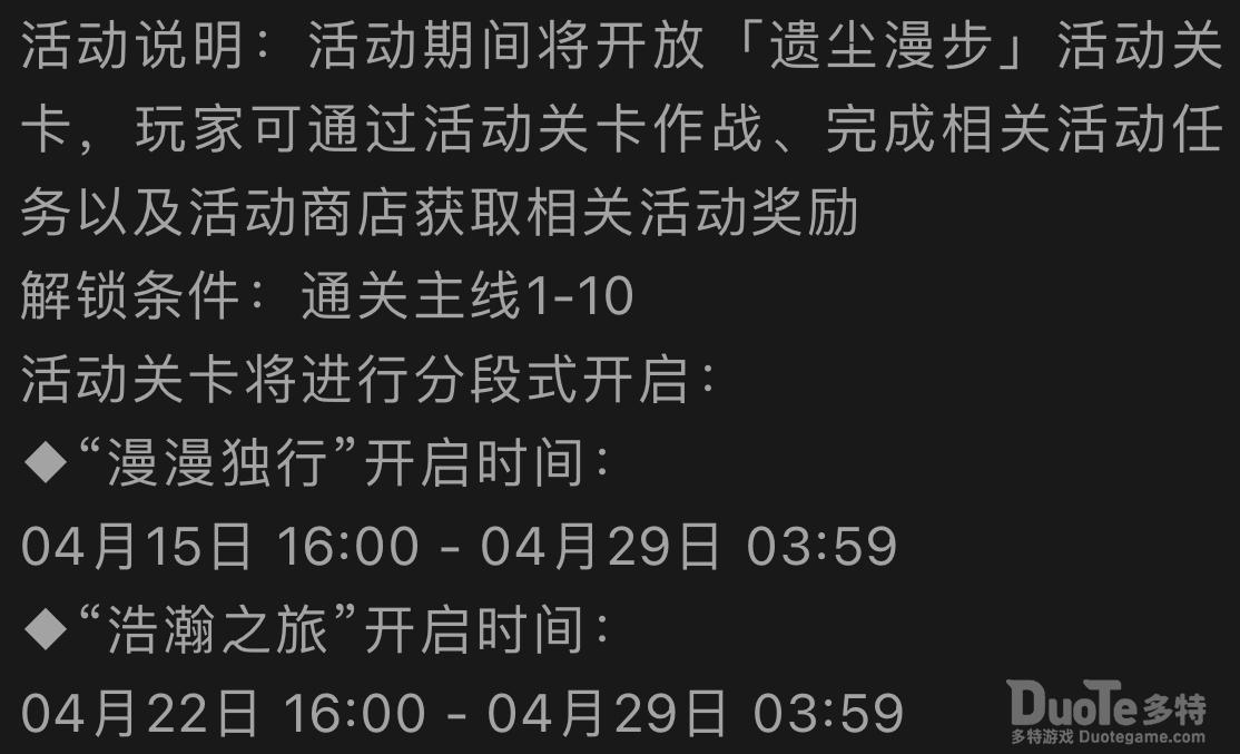 一、全新活动SideStory「遗尘漫步」,活动关卡开启