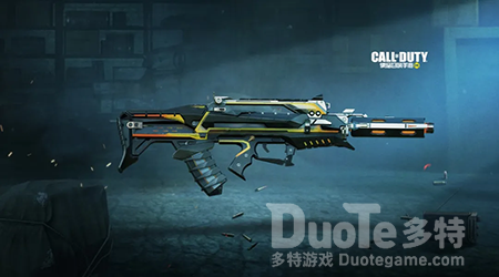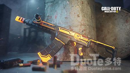 其中,Type25作为一把高机动性的突击步枪,虽然它的伤害值并不出众,但其极高的射速,配以突击步枪中不错的机动性,使得它在近战中常能发挥出超强实力,以极其亮眼的表现带领队伍掌控战局。Type25-矩阵几何作为使命手册中唯一的一把突击步枪,其枪身有了大幅度的调整,以极具个性化的锯齿形状闪亮登场,渐变的橙黄线条动感十足,枪口处隐隐待发的橙色光芒,犹如即将喷发的火焰,蓄势待发。