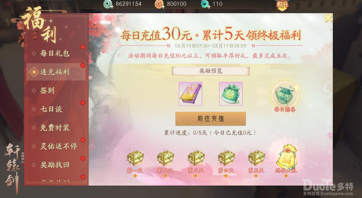 【充值特惠,欧皇大奖神秘降临】3月10日维护后至3月17日05:59,连续充值活动再度开启!每日充值达到30元可获好礼相赠,活动期间累计充值达到5日即可领取终极大奖——欧皇降临礼。