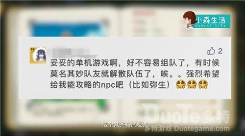 值得注意的是,“想要攻略NPC”等玩家反馈意见,则揭露了用户对NPC的“强社交”属性。唐牛对此很遗憾的表示,不少NPC在设定上是“已婚”状态,想要增设攻略NPC等功能似乎不太现实,但后续可能会增加NPC好感度模块,以满足玩家的迫切需求。