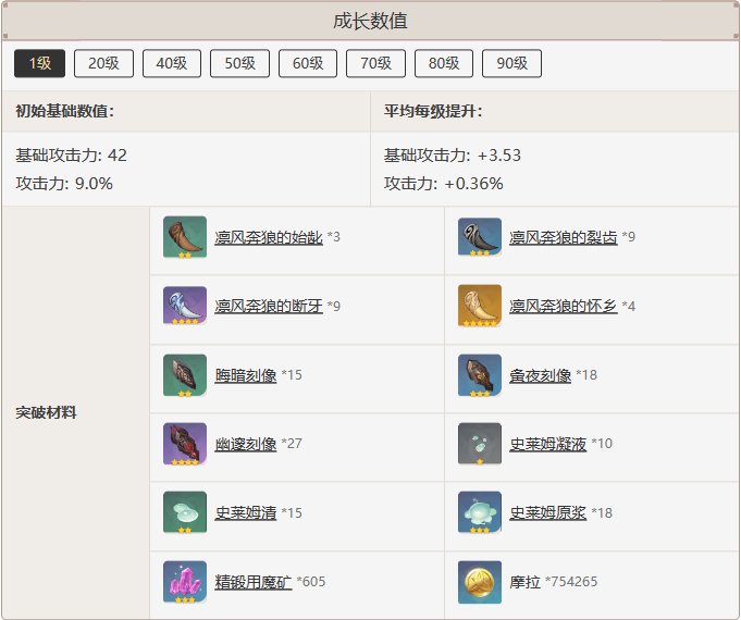 成长数值一览