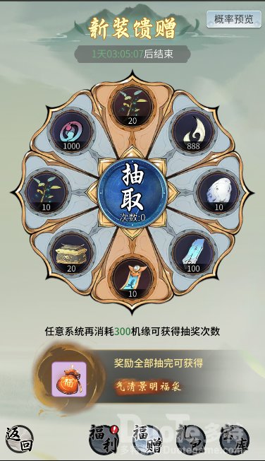 (Tips:在游戏内任意系统消耗一定机缘即可获得抽奖次数哦!)