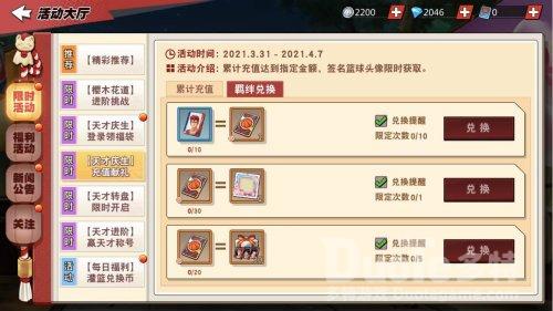 活动期间,抽得的“樱木花道特训卡”不仅可以用来升级樱木的技能,当樱木技能拉满后,没用完的“樱木花道特训卡”不要丢,还可以在活动大厅反向兑换“天才羁绊兑换卡”,用来兑换其他球员特训卡、“樱花飘零头像框”等海量道具资源,隔壁小孩都馋哭了!