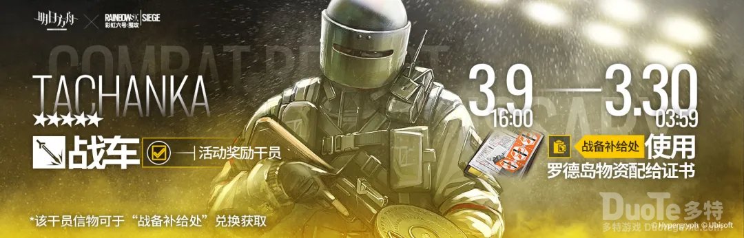 兑换说明:活动期间,玩家可通过挑战活动关卡及完成【作战汇报】获取[罗德岛物资配给证书],可在【战备补给处】使用[罗德岛物资配给证书]进行兑换补给