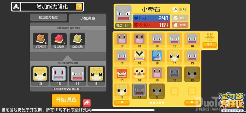 除了图鉴中累积研究等级可以获得松糕外,还可以通过附加能力强化中的环境调查获取,探险家派遣闲置的宝可梦外出调查后,便可根据宝可梦的等级、属性等获得松糕奖励。需要注意的是,完成环境调查的宝可梦也会离开营地。