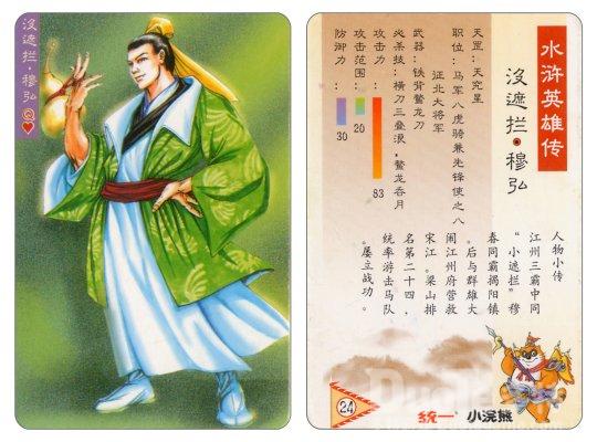 【传承经典 让集卡童年不留遗憾】小浣熊水浒卡的天罡星角色中,经典频出——霸气外露的霹雳火·秦明,孑然高傲的豹子头·林冲,从背景到服饰,尽显细节。然而,同为天罡星的没遮拦穆弘,经典版水浒卡就稍显遗憾了——