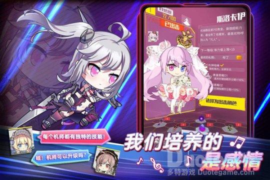 另类养成,梦幻换装在游戏里,玩家将可以招募到不同的机师们。制作组也为游戏拓展了诙谐的原创剧情,人物拥有了属于他/他们的故事,在剧情中,玩家可以通过攻略不同的人物增加好感度,这将影响到人物的战斗力!