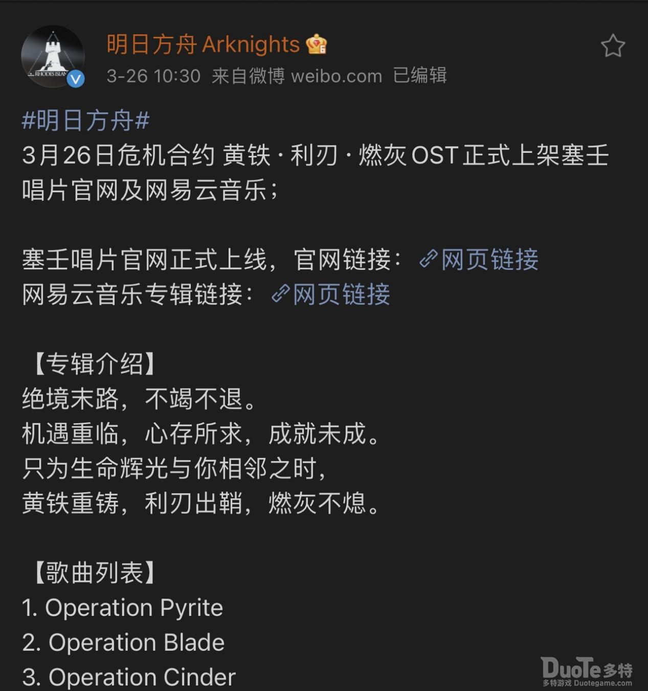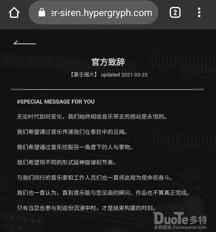 在官方发布微博的同时,也透露给了刀客塔们「塞壬唱片」的官网,其官网收录了「塞壬唱片」的所有专辑,并且没有评论功能,让大家能够全身心的欣赏游戏内的音乐(是不是出错了,怎么在塞壬官网没看到damedane)