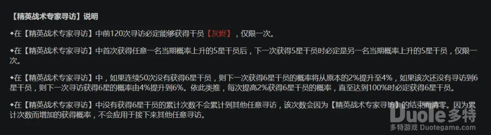 明日方舟的卡池保底一直是一个博士们的心结,但是考虑到本次的绝版属性,明日方舟设定了120抽必出「灰烬」的设定。