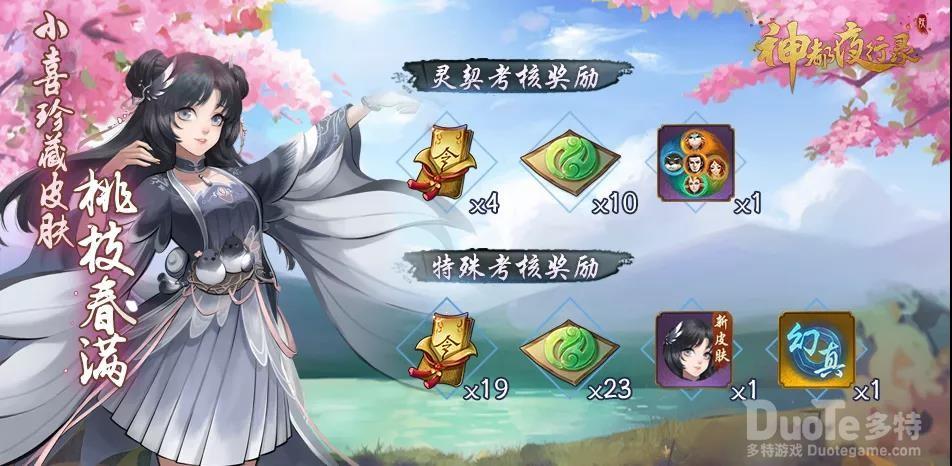 小喜珍藏皮肤“桃枝春满”则需通过第二十七期灵契“春归”获取,降妖师们需携带妖灵参与战斗,获取灵契值提升灵契等级以解锁奖励,完成所有考核后便可获得包括新皮肤在内的丰厚奖励。