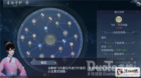 《浮生为卿歌》手游全新主角新增养成玩法—星运守护现已开启。阁下主角等级达到90级后玩法自动开启,养成总共分3个分支,每个分支的主星位分别对应2个主动技能与1个被动的技能的增强,当阁下的3个主星位达到一定条件以及总星位等级达到一定条件时,可激活中间的守护行为,便可获得新的怒气技能与增强效果!